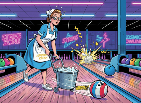 Unser "Ruhiger". Etwas zurückhaltend liest er unseren Gästen trotzdem jeden Wunsch von den Augen ab. Und er kennt sich zunehmend mit der Technik der Bowlingmaschinen aus. Also findet man ihn auch öfter im Maschinenraum bei der Reparatur irgendwelcher Kleinigkeiten.